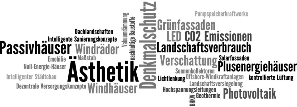Weiterhin bedarf es zahlreicher Innovationen, um dem steigenden Material- und Flächenverbrauch für die Bereitstellung alternativer Energien gerecht zu werden. Allerdings dürfen bei dieser großen Herausforderung die Grundbedürfnisse des Menschen nach Ästhetik und Ergonomie nicht aus den Augen gelassen werden. Wie wir diese Aufgaben lösen, wird maßgeblich darüber entscheiden, wie wir unsere Umwelt in Zukunft wahrnehmen. Ein menschengerechter und sinnvoller Umgang mit den neuen Energietechnologien muss also zentraler Bestandteil der Architektur sein.