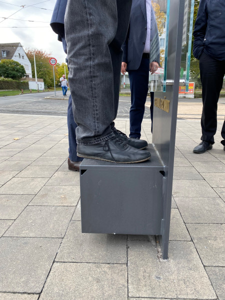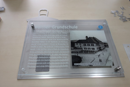 Die Gedenkstele besteht aus 3 Tableaus mit Bildern und Informationen zu diesem bedeutsamen Teil der Heidingsfelder Geschichte. Die Inhalte wurden in Zusammenarbeit mit dem Johanna-Stahl-Zentrum erarbeitet und der Platz mit dem Gartenbauamt der Stadt Würzburg umgestaltet. An die deportierten Jüdinnen und Juden erinnert außerdem ein Koffer mit Bezug zum DenkOrt Deportationen vor dem Würzburger Hauptbahnhof. Der Gedenkort wurde als erster Standorte des Leitsystems bereits 2018 fertig gestellt und übergeben.