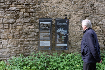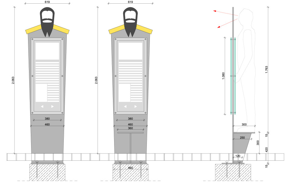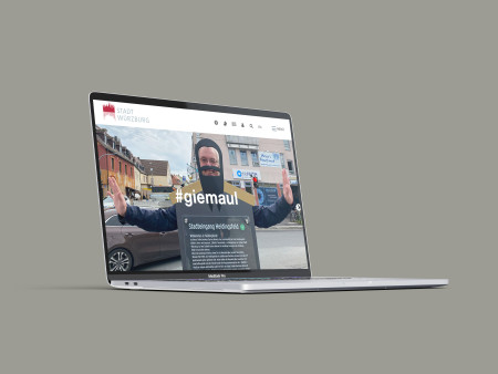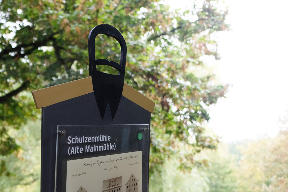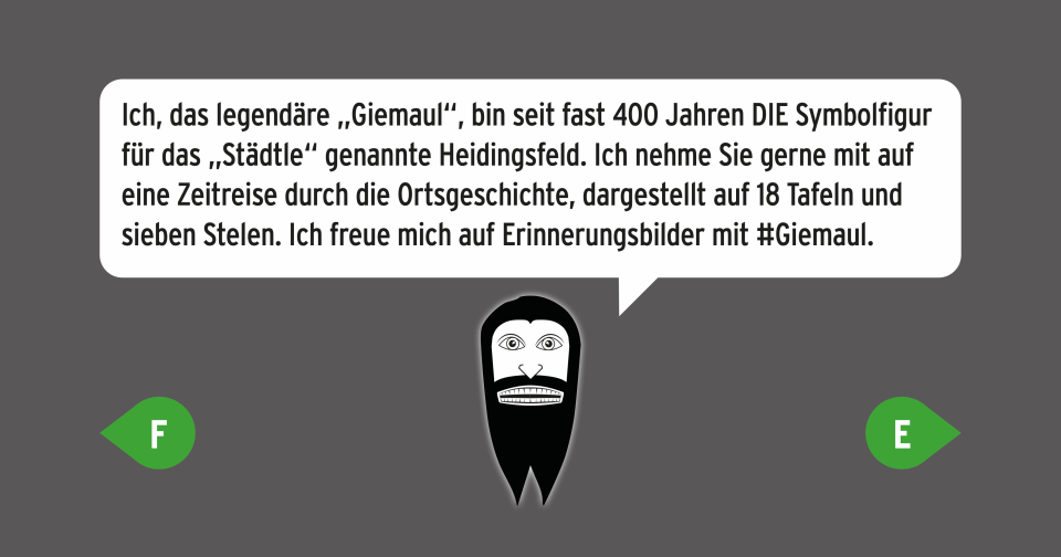 Das Leitsystem erläutert auf den Tafeln knapp und auf den größeren Stelen ausführlicher geschichtliche Hintergründe der thematisierten Personen, Gebäude oder Objekte. Die Stelen sind nach dem Vorbild einer Fotowand mit Gucklock gestaltet. Das lädt alle dazu ein, selbst mal in die Rolle des Giemauls zu schlüpfen und sich so auf einem Erinnerungsfoto oder Selfie zu verewigen. Die Bilder können dann auf den Social Media Kanälen mit dem Hashtag #giemaul gepostet werden. So markiert, sammeln sich alle Bilder zum Thema und es entstehen lustige Bildergalerien.